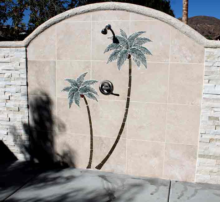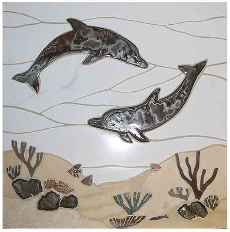 Overlay murals are installed on top of your existing tile! Made of a single solid piece of thin cut stone with tapered edges. Their backs are fully carved to look real. |