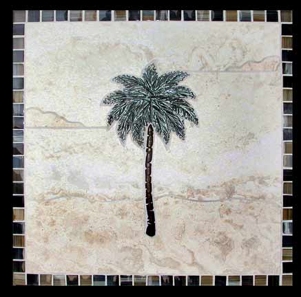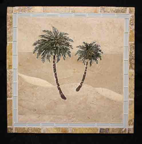 Square double palm with semi scenic background 24"x24" $1,100 |
