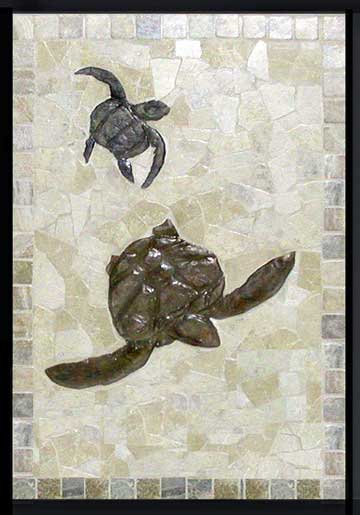 Use these photos of SOLD murals for design ideas for your mural. Yours can be any shape. Any size. I make each mural to order. You have freedom to choose colors, background style, and you can choose the pose of pieces such as turtles. I always 3D carve the features unless you specify it's for floor installation |