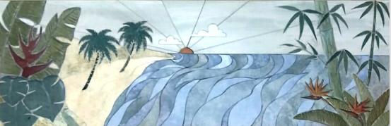Large square, full scene, double palm tree. (custom order- sold) 22"x22" $1,500 |