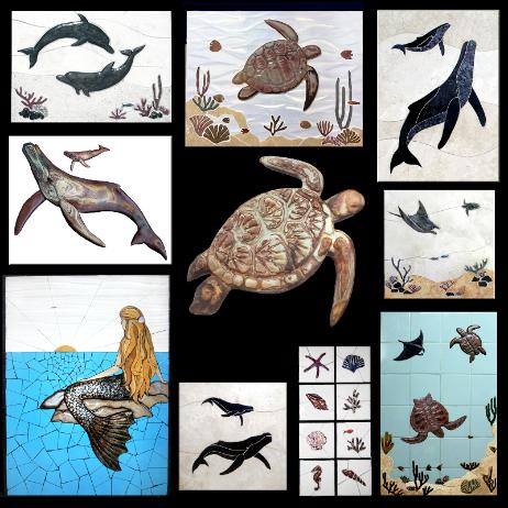Traditional Cut Stone Art Tile Murals I hand make my murals using my own designs or designs provided by my customers. Murals usually take from 2-4 weeks to make and 4-6 days to ship nation wide. NEVER PRINTED, MASS PRODUCED OR REPRODUCED! Finished murals are set on backer board |